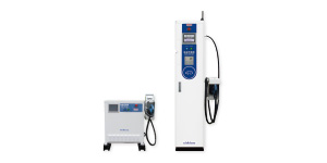 これからの普及が予想される電気自動車(EV車)用の急速充電器。岩電では、省スペース型の急速充電器を取扱っております。
